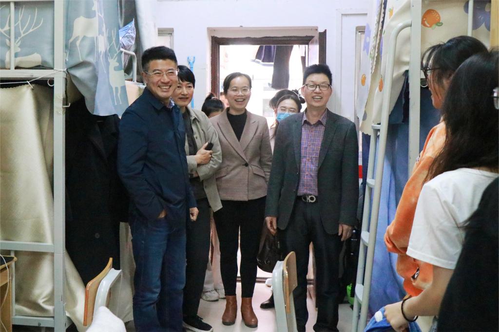 本站讯 为进一步了解学生返校情况,2月26日下午,我院党委书记邱冠,院长肖国栋带领我院领导班子成员、班主任、辅导员走访兰园4栋我院学生宿舍,关心学生的生活情况。