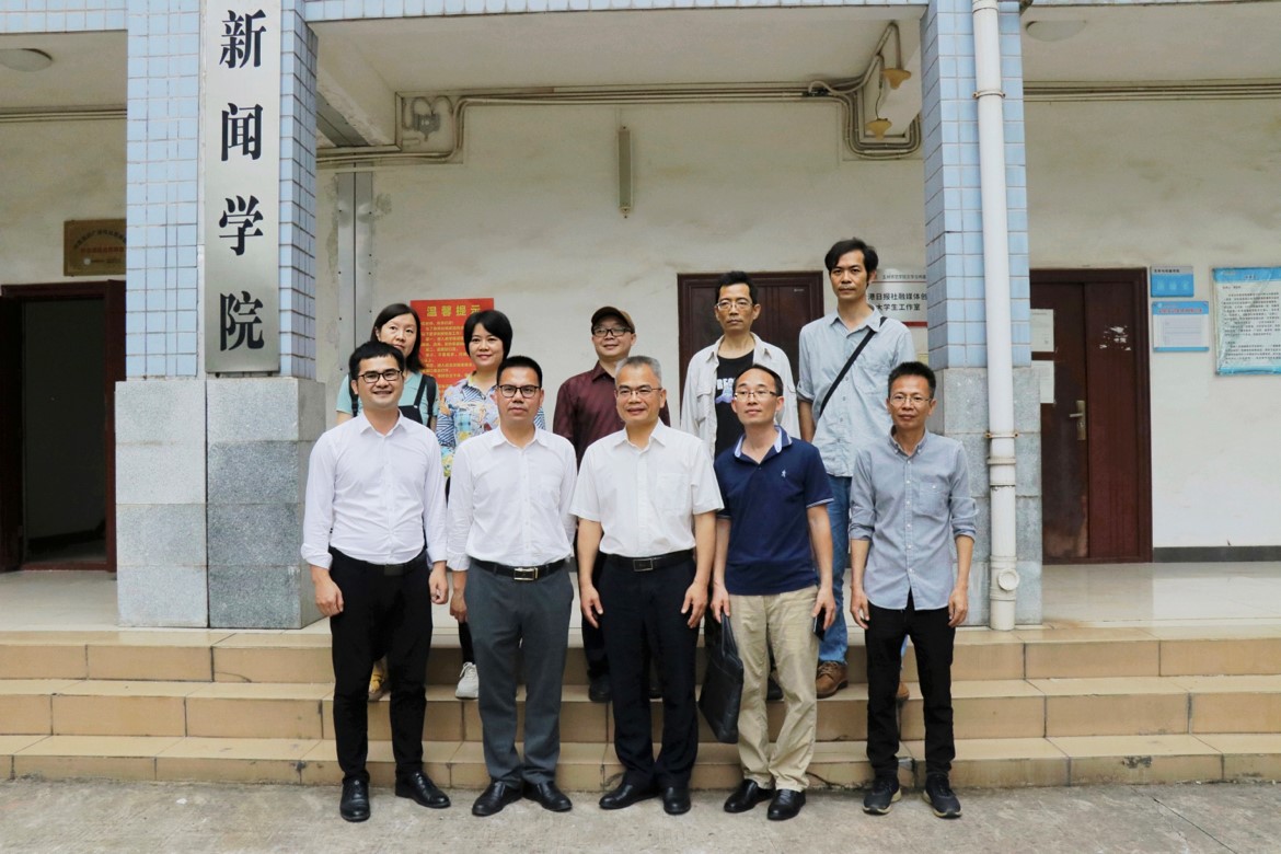 本站讯 4月20日下午,我院于我校东校区至善楼309会议室举行yL23411永利集团与贵港日报社交流座谈会,并在文科实训楼演播室前进行融媒体创新教学实践基地挂牌仪式。贵港日报社副社长张智荣、融媒体技术部主任谢静翔、摄影部主任潘金强等一行人到我院进行交流,我院副院长郑立峰,办公室主任,传媒系系主任及相关教师出席座谈会,部分学生代表参加。此次座谈会由郑立峰主持。