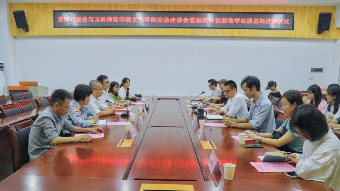 座谈会上,郑立峰首先对贵港日报社负责人的到来表示欢迎,对贵港日报社在我校挂实践基地表示感谢,接着向贵港日报社负责人汇报我院师资、特色专业和教学进展的基本情况。他指出,我院汉语言文学专业是国家级一流本科专业建设点,我校注重双一流建设,近年来,我校逐渐在专业学科、课程上开始转变方向,我院师范专业招生数量逐年上升,开设的卓越班培养了大量优秀的写作人才,写作是我院的一大亮点。并通过讲述我院的优秀毕业生事例,展示了我院培养人才的能力。