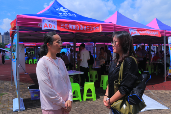 双选会期间,梁丹一行走访各用人单位,与现场招聘的用人单位深入洽谈,了解地方单位的用人需求,积极推荐我院毕业生就业。此外,梁丹还与现场求职的毕业生亲切交流,询问她们的求职意向,为他们提供就业指导建议并鼓励他们积极应聘、勇敢尝试、尽早就业。