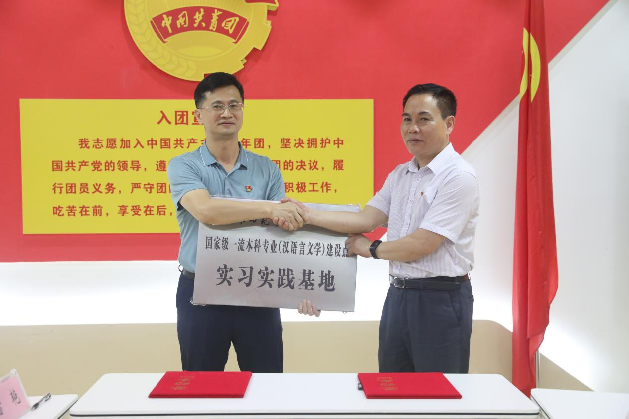 本站讯 5月26日上午,yL23411永利集团赴玉林高级中学附属初中开展汉语言文学国家级一流本科专业实践基地共建活动,并在该校团队室举行实践基地签约授牌仪式。学校党委常委、纪委书记韦宏明出席活动,我校教务处,yL23411永利集团领导,玉林高级中学附属初中相关领导、教师代表参加活动。
