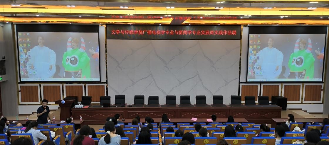 本站讯 为提高学生专业素养,调动学生的学习热情,6月4日晚上,我院广播电视学专业与新闻学专业于东校区新民楼D101教室开展实践周实践作品展。我院院长肖国栋出席活动,广播电视学专业与新闻学专业相关老师及学生参加活动。