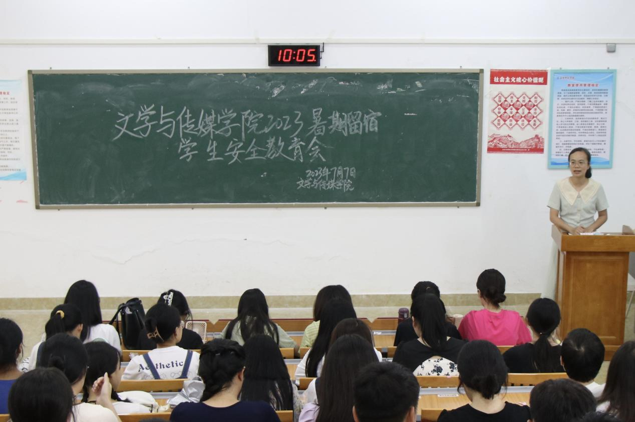 本站讯 为落实学生暑期留宿安全教育工作,强化留宿学生安全意识,营造安全、健康的假期生活环境,7月7日上午,我院于我校东校区至善楼308教室召开2023年暑期留宿学生安全教育会议。本次会议由辅导员庞嵘嵘主持,我院党委副书记梁丹出席会议,全体假期留宿学生参加会议。