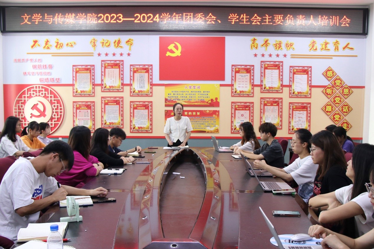 本站讯 为更好地培养新任学生干部的综合素质能力,引导学生干部们熟悉相关工作,7月7日上午,我院在我校东校区至善楼206会议室召开2023-2024年学年团委会、学生会主要负责人培训会。本次会议由我院新任学生会主席蓝纯苑主持,团委书记秦爽及全体学生干部共同参与。
