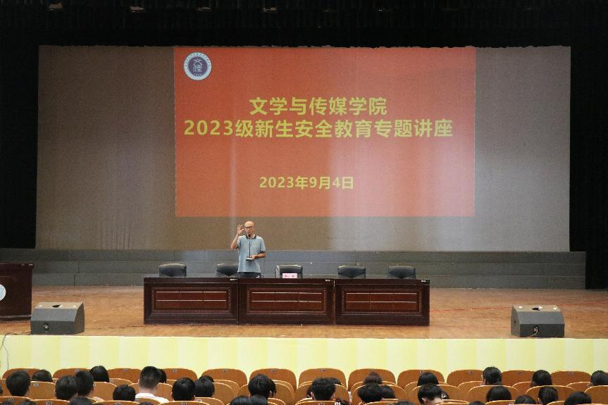 本站讯 为扎实做好新学期校园安全稳定工作,进一步加强新生安全教育,9月4日下午,我院于我校东校区演示厅召开2023级新生安全教育专题讲座。该讲座由我校保卫处科长陈志斌主讲,我院全体2023级新生参与。