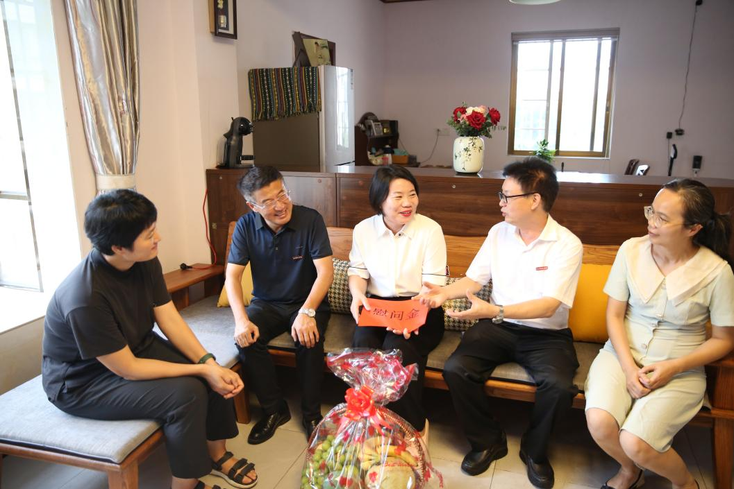 在慰问过程中,学院领导与刘雍进行亲切交谈,详细了解她的生活和工作情况,认真倾听她对学院事业发展的意见和建议,感谢她为学院建设发展做出的不懈努力,并希望她继续坚定信心、再接再厉,继续为学院的改革发展发挥才智。刘雍对学院的关心和领导的看望表示感谢,表示在今后将立足本职工作,努力在教学、人才培养等方面取得新成绩,以实际行动为学院高质量发展做出新的贡献。