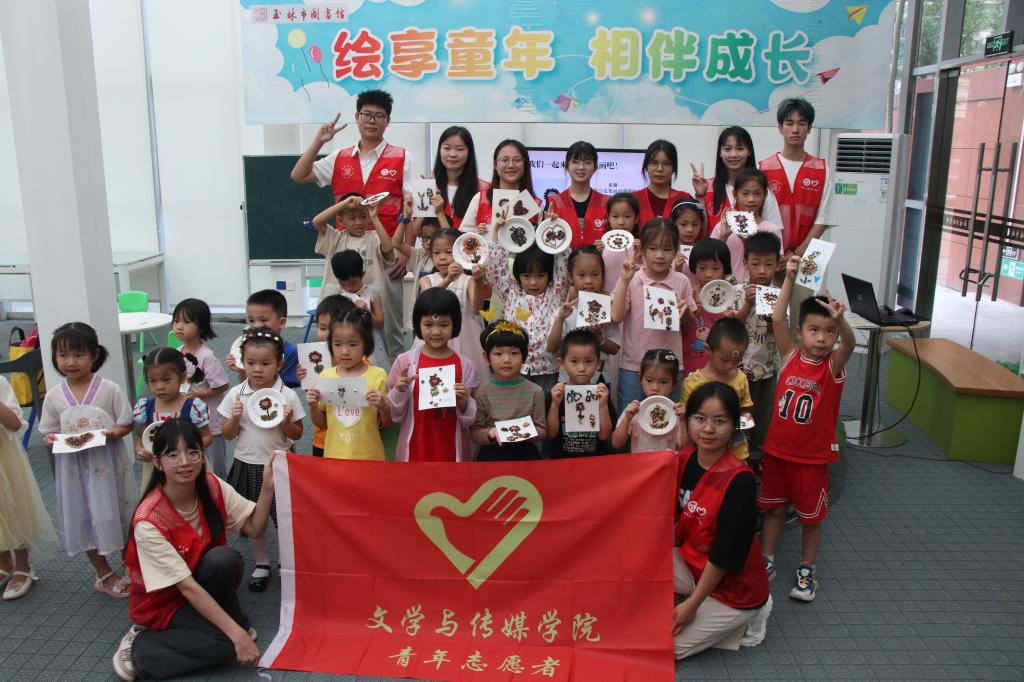 本站讯为帮儿童构建丰富的精神世界,在动手动脑中寓教于乐,9月16日上午,我院联合玉林市图书馆一楼阅读分享空间举办“绘享童年,相伴成长”公益活动,我院学生志愿者、图书馆工作人员和25名儿童读者及其家长共同参与本次活动。