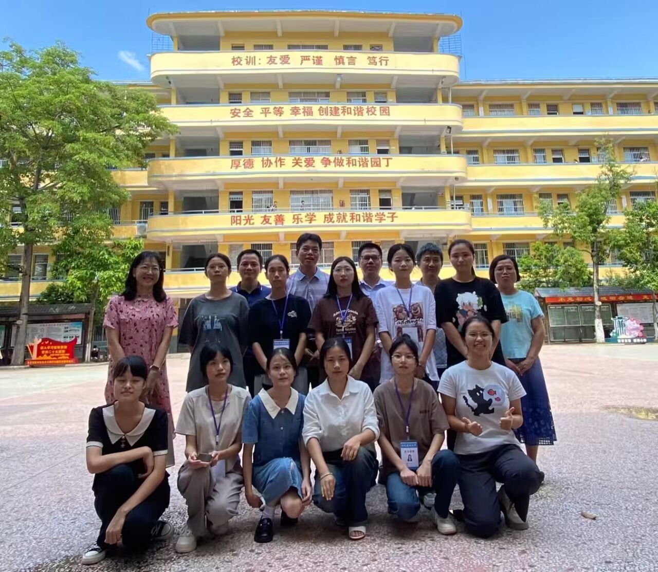 最后,我院各领导老师、陵城初中各领导以及全体实习生于教学楼前合影留念。