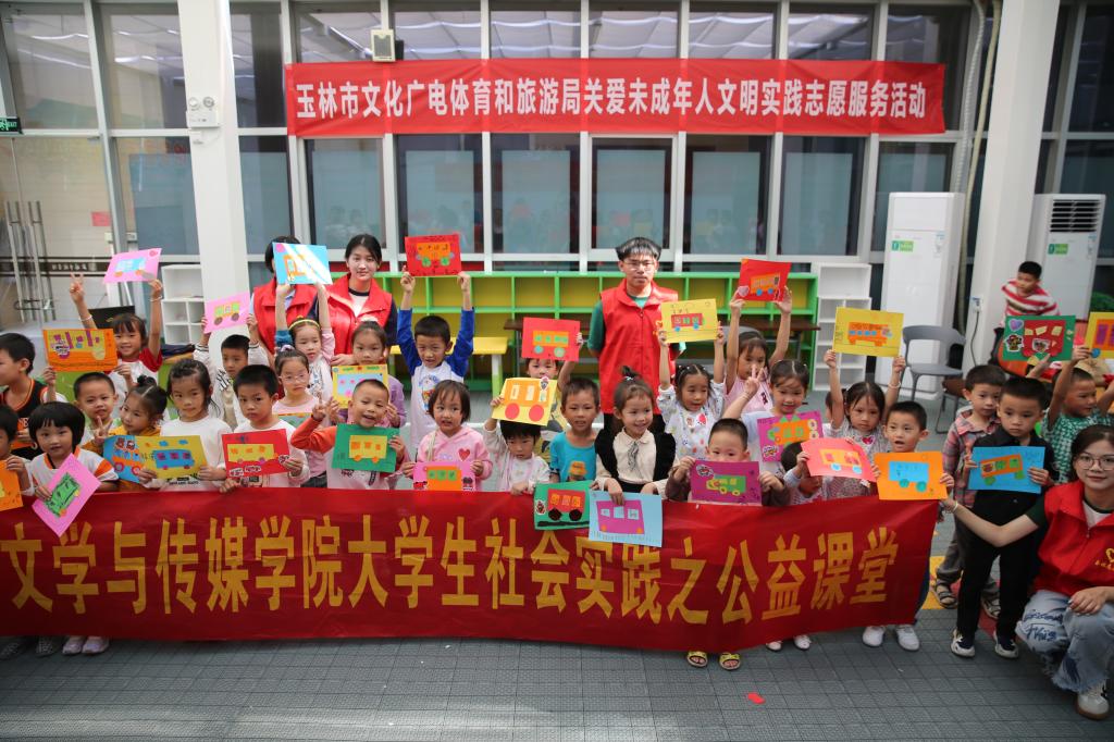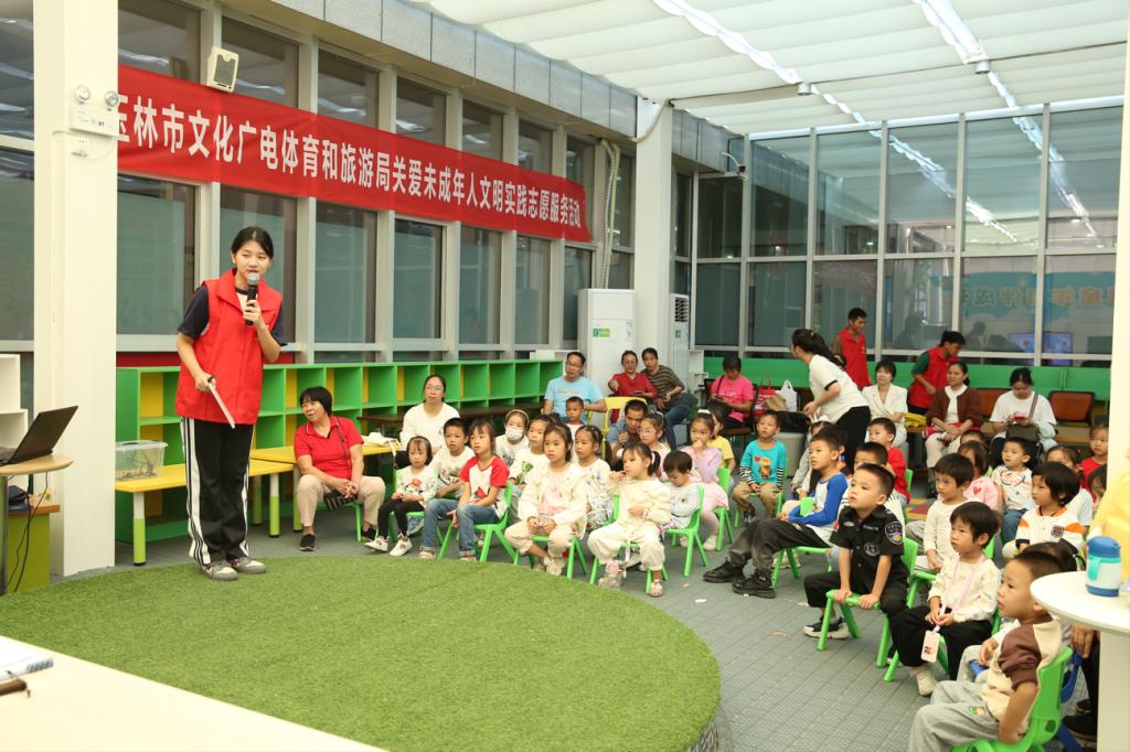 本站讯 为激发儿童阅读兴趣,培养儿童安全乘车的意识,10月28日上午,我院联合玉林市图书馆、玉林市文化广电体育和旅游局一同开展关爱未成年人文明实践志愿服务活动,在玉林市图书馆一楼阅读分享空间举办“绘享童年,相伴成长”亲子绘本故事会。我院学生志愿者、图书馆工作人员、玉林市文化广电体育和旅游局志愿者和30余名儿童读者及其家长共同参与本次活动。