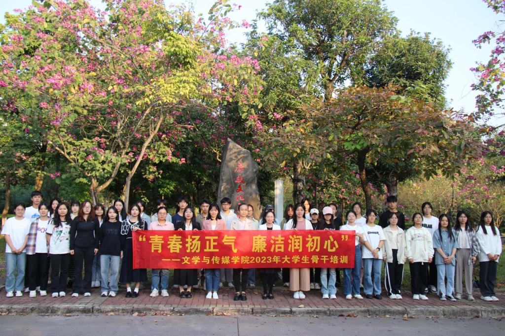 本站讯 为提高学生干部的廉洁自律意识,传承清正廉洁的优良作风,扎实推进清廉学校建设。11月28日下午,我院在东校区廉政文化主题园开展以“青春扬正气,廉洁润初心”为主题的2023年大学生骨干培训。学院党委副书记梁丹出席,全体专兼职辅导员及学生干部代表参加。
