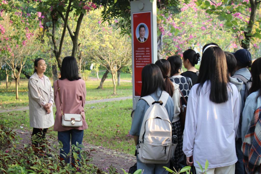 随后,梁丹带领师生们参观廉政主题园,学习园中的警言警语,给学生们讲述“郑相拒鱼”、“暮夜却金”等廉洁文化小故事。梁丹娓娓道来,学生们聚精会神,深受熏陶,潜移默化中树立恪尽职守,履职尽责的担当精神。师生们一起走在学校廉洁教育园内,共同学习廉洁文化,滋润初心使命。