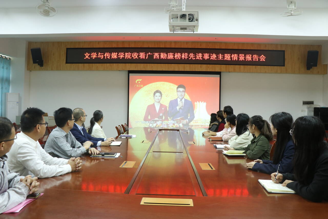 本站讯 为充分发挥“广西勤廉榜样”先进典型引领示范作用,弘扬主旋律,传播正能量,营造学榜样、当先进、做贡献的良好氛围。11月29日上午,我院组织党员干部在东校区至善楼309会议室集中收看广西勤廉榜样先进事迹主题情景报告会实况录播。学院党委书记冯健秋,党委专职组织员邱冠,党委副书记梁丹,副院长郑立峰等同志参加观看。