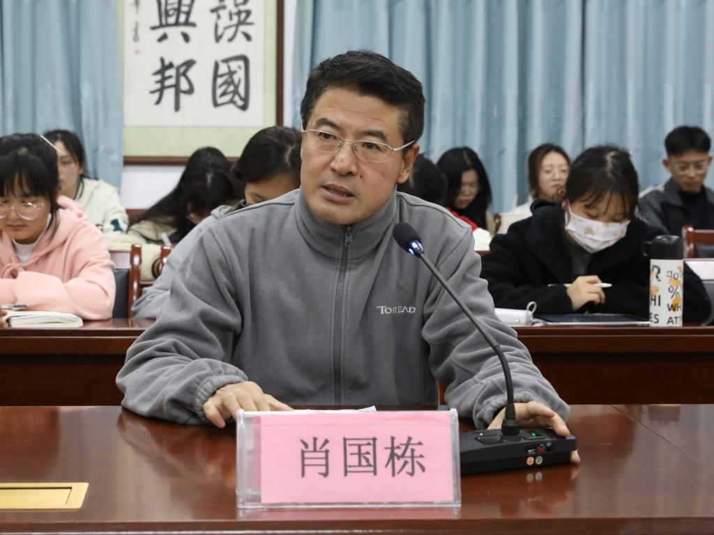肖国栋对初试成功上线的学生表示祝贺,并就学生初试成绩进行总体分析,对复试阶段可能出现的问题与困惑、学生心理状态、利用政策优势及面试问答技巧等方面展开讲解,提醒同学们端正态度,认真梳理、复习和巩固专业核心知识点,鼓励大家要保持积极的心态和坚定的信心,认真掌握备考节奏,注重面试策略,调整自身情绪,顺利通过复试。