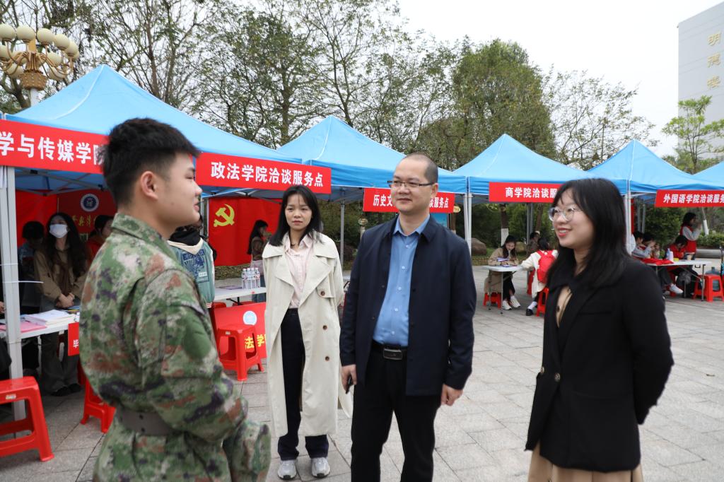 本站讯 3月22日上午,永利yl23411集团2024届毕业生春季大型就业双选会在东校区读书广场举办。为促进毕业生早就业、稳就业,扎实推进学生就业工作,学院党委书记冯健秋,院长肖国栋带领党政领导班子前往双选会现场开展毕业生就业指导工作。