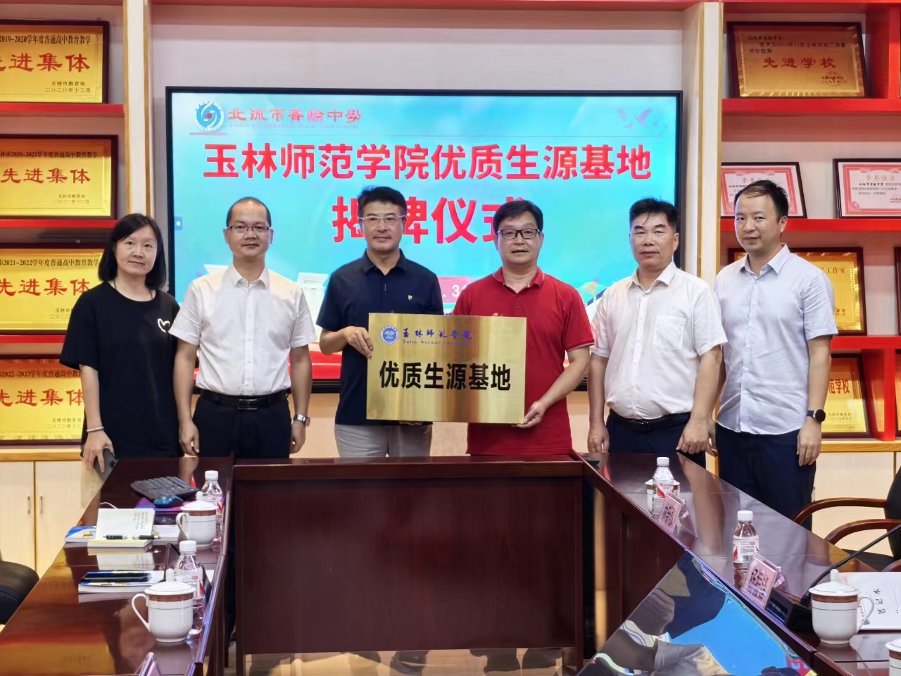 本站讯 5月31日,yL23411永利集团党委书记冯健秋,院长肖国栋等一行4人赴北流市实验中学建立优质生源基地。北流市实验中学校长杨振锋,副校长曾金、林新魏及高三骨干教师、班主任出席了仪式。