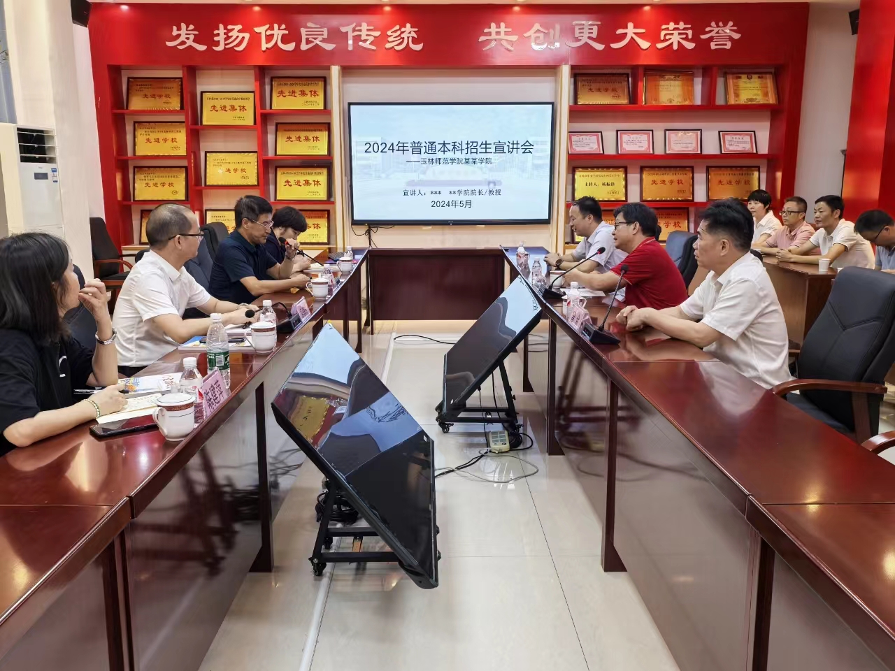 冯健秋首先对北流市实验中学连续多年为我校输送大量优质生源表示感谢,希望双方能够在人才培养、资源支持、教学实践等方面开展合作,利用好高校资源促进地方发展。肖国栋介绍了永利yl23411集团办学条件、专业特色以及学科发展情况,着重对2024年度招生计划和政策进行了讲解;同时也从专业设置、学科建设及人才培养等方面介绍yL23411永利集团的基本情况。他表示,近年来学校在“双一流”创建和高质量发展方面取得了一系列进展,文传学院也一直致力于培养具备专业基础扎实、创新和实践技能突出的高素质人才,希望两校通过合作不断开拓合作的深度与广度,为学生提供更好的发展平台,推动两校的教学科研与教学实践相融合,实现资源共享、优势互补的新局面。
