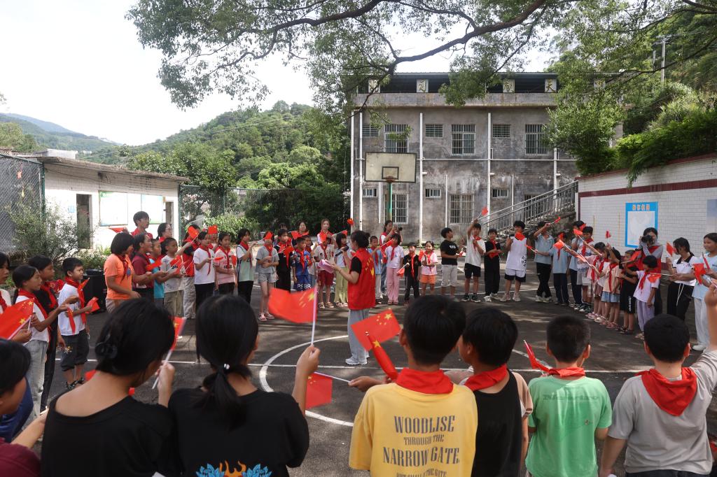 在“听党话、跟党走、感党恩”红色文化教育活动环节,实践团成员给学生分享长征的故事,缅怀那段艰苦卓绝而又伟大光辉的征途,引导学生继承并发扬长征精神。通过“击鼓传花”的方式开展党史、团史、少先队史知识竞答活动,激发学生学习热情,加深学生对知识的理解和记忆。活动结束后,师生手握五星红旗,满怀深情齐唱《我和我的祖国》,为党的生日献礼,祝福伟大的祖国。