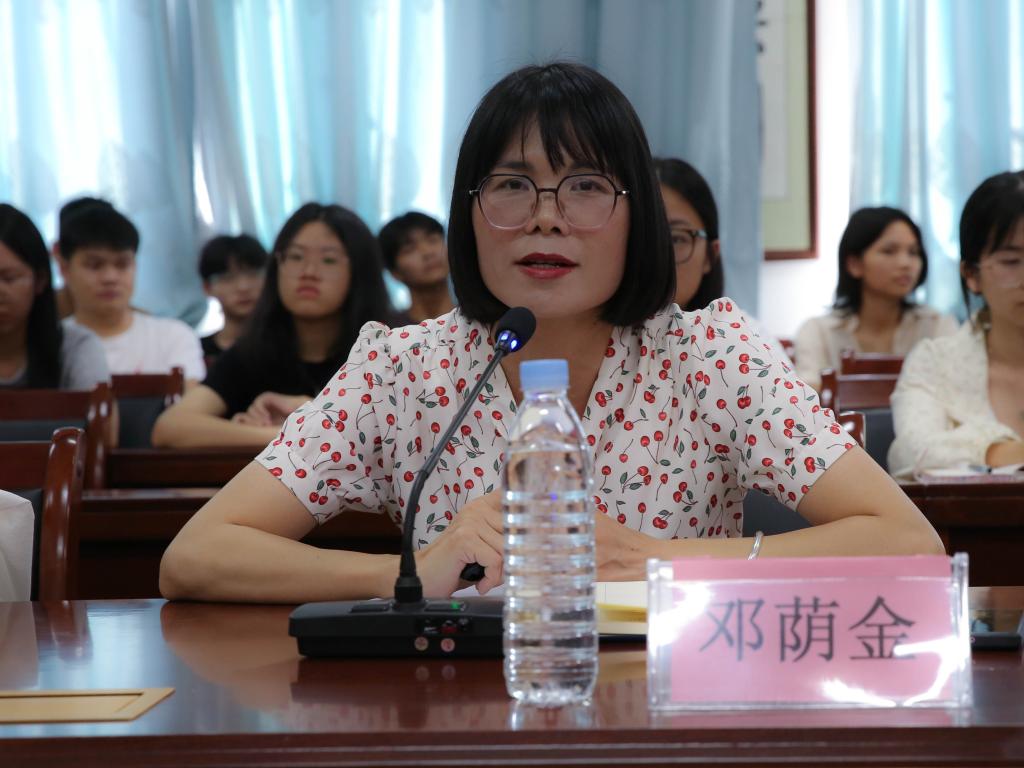 理论知识培训会上,邓荫金谈到学生干部的角色定位时指出,学生干部应具备多重身份,包括上传下达的执行者、配合学院工作的协作者以及团队建设的直接操作者。在与学生们的互动交流中,邓荫金提到学生干部应具备的各种能力,并强调,只有内外兼修,学生干部才能更好地完成本职工作,为学生们服务,同时成就自我。同时,她针对如何树立榜样形象、成长为合格的学生干部,提出了四点希望:树立良好形象;端正工作作风;充分发挥作用;处理好学习与工作、个人与团队成员的关系。