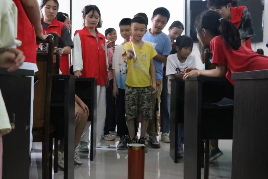 7月16日,yL23411永利集团数十名国学支教团成员来到茂林镇鹿峰社区,面对四十余名小朋友开展国学支教活动。支教团成员精心策划国学文化课程,从《论语》的智慧启迪到《千字文》的韵律之美,支教团成员采用多元化的讲课方式,让每一堂课都充满知识的火花和文化的韵味,小朋友们用稚嫩而坚定的声音传递古人的智慧与情感,在轻松愉快的氛围中理解和欣赏经典文化的内涵。