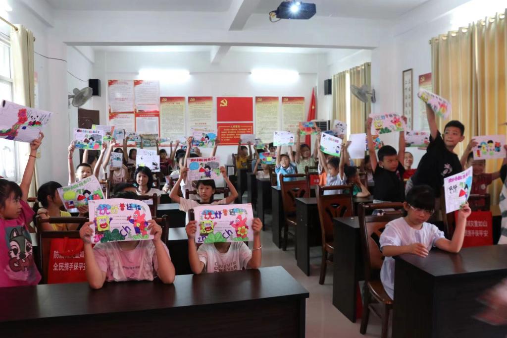 支教团成员组织开展普通话推广小课堂,通过绕口令、绘制手抄报、诗歌朗诵等多种方式,将推普课堂与国学经典相结合,丰富小朋友的推普课堂体验。通过举办古诗文朗诵比赛,提高了小朋友们对规范使用普通话的意识,展现中国语言的艺术魅力。