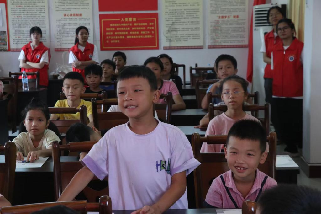 在红色爱国教育的环节中,实践团成员给小朋友们讲述湘江战役中的故事,重温那段波澜壮阔的历史,引导小朋友们继承并发扬革命先烈的坚定信念与无私奉献精神。实践团组织击鼓传花党史知识问答活动,增强小朋友们对党史的深入理解和记忆,拓宽历史视野,培养爱国情怀,让他们在一问一答中感受党的光辉历程。