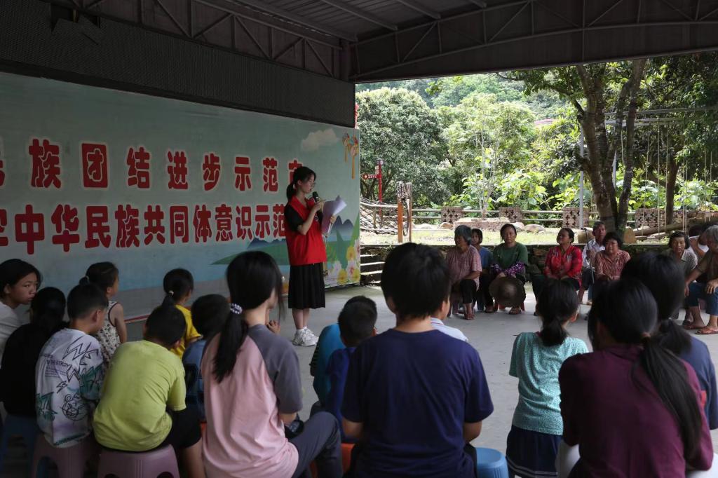自7月20日起,实践团成员深入各个少数民族村落服务于乡村教育,在推广普通话时,对方言进行保护传承。团队围绕趣味方言教学、文字传声筒、快乐绕口令等活动形式创设多元化、多场景、沉浸式的交流环境,志愿者采取现场提问方式,鼓励少年儿童、父老乡亲充当方言小老师,将“早上好”“谢谢”“一帆风顺”“小手拉大手,讲好普通话”等日常问候语、成语及宣传语译为方言,村民们踊跃回答,现场互动氛围浓厚。通过当地民族语言拉近情感,积极调动民众参与,提高普通话学习动力。希望本次活动能够让民众在会说方言的基础上,进一步学习国家的主体性语言,普通话跟方言互相补充、共同繁荣。