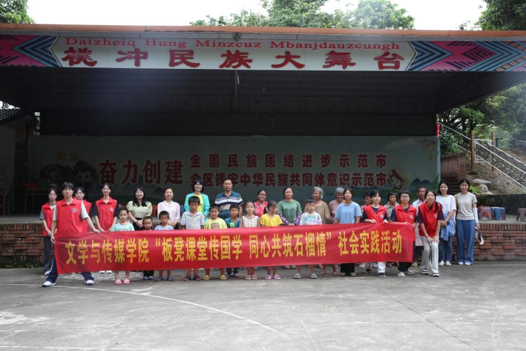 连日来,在玉林市各个少数民族村落,实践团成员搬来小板凳,让村民们围坐一圈,开展铸牢中华民族共同体意识理论宣讲。通过“板凳课堂”与村民沟通交流,及时收集意见、答疑解惑,进一步扩展覆盖面,打造民众身边的流动课堂。以街边采访、问卷调查、入户走访等形式,进一步摸清少数民族村落普通话普及的情况,了解民族语言在乡村生活中的实际情况。实践团结合当地实际情况,采取民众喜闻乐见的形式,对象化、分众化、互动化地开展宣讲,更好地适应不同少数民族村落的人文风俗习惯,达到高效能宣讲效果,增大覆盖面的广度和宣讲内容的深度,真正贯彻民族团结的方针和落实推普宣传工作。成员与群众们在交往、交流、交融中,搭建了文化桥梁,让民众受教育、学生长才干,共做文化交融的先行者。