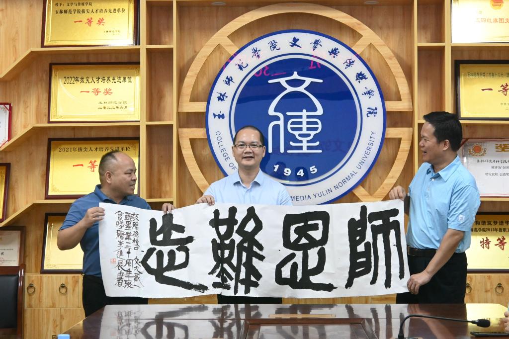 中文921班向学院赠送了《师恩难忘》书法作品一幅,表达了校友对学院的深情热爱,也凝聚着对学院的衷心祝福。