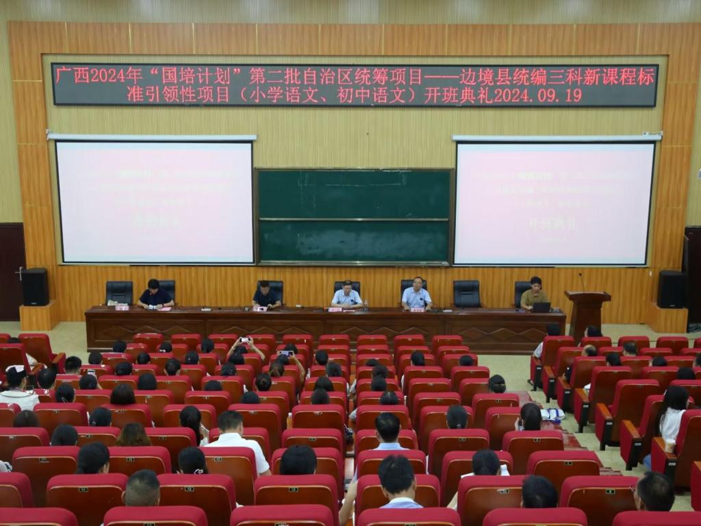 本站讯 9月19日上午,我校在东校区明德楼113教室举行广西2024年“国培计划”第二批自治区统筹项目——边境县统编三科新课程标准引领性项目(小学语文、初中语文)开班典礼。学校党委常委、宣传部部长徐一周出席典礼,教师教育学院院长谢清理、yL23411永利集团院长肖国栋、副院长胡瑜,国培班班主任及全体参训学员参加典礼。