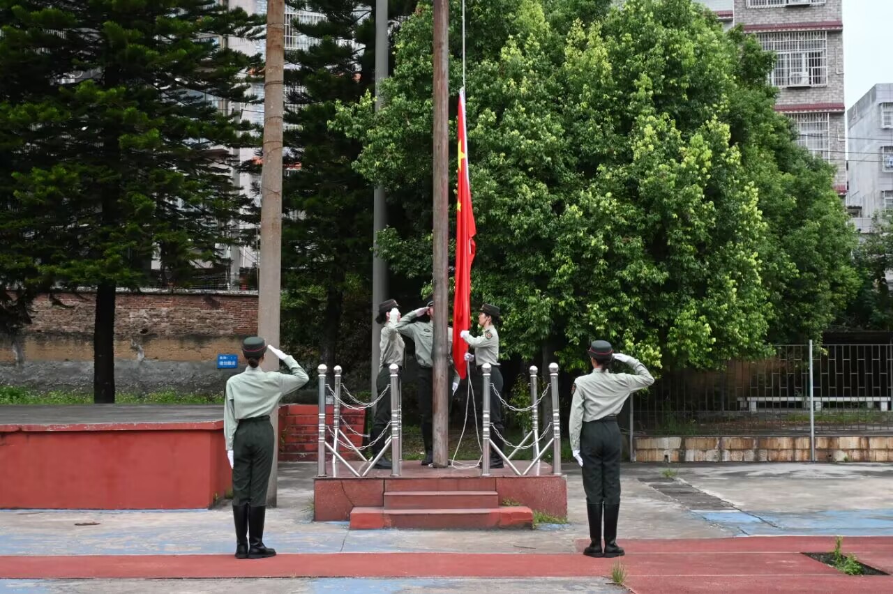清晨七时,升旗仪式准时开始。国旗护卫队队员步伐矫健,护卫五星红旗入场。在《义勇军进行曲》的激昂旋律中,五星红旗冉冉升起,全体师生庄严肃立,高唱国歌,向国旗行注目礼,共同向伟大祖国致以崇高的敬意。