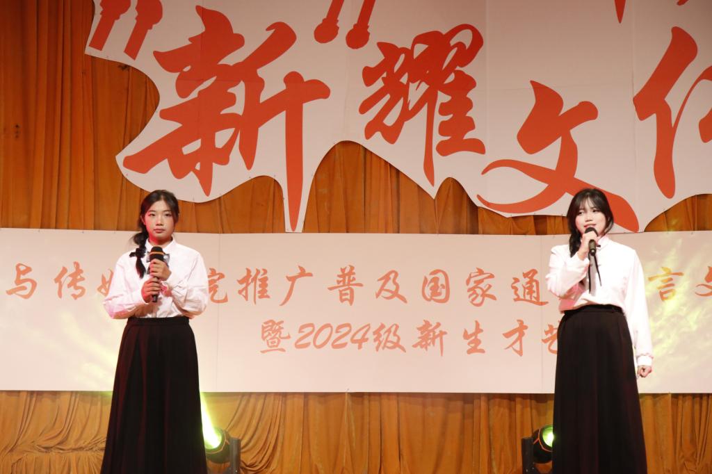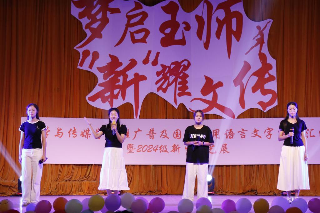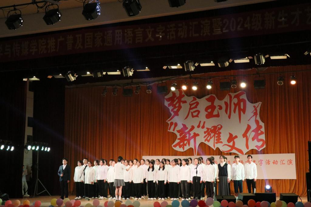本站讯 11月2日晚,yL23411永利集团在我校西校区演示厅举行推广普及国家通用语言文字活动汇演暨2024级新生才艺展。我院党委书记冯健秋,党委副书记邓荫金,全体辅导员、2024级新生班主任及全体新生参加活动。