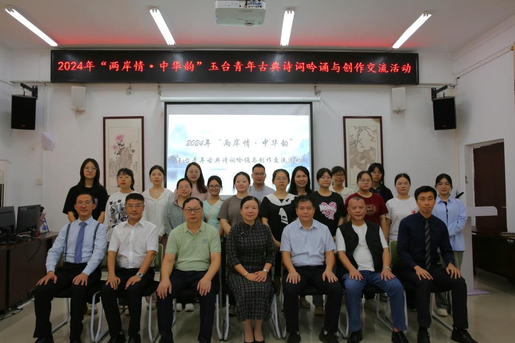 本站讯 11月14日上午,2024年“两岸情·中华韵”玉台青年古典诗词吟诵与创作交流活动在我校东校区文科楼403举办,本次活动以线上与线下相结合的方式开展。出席此次活动的有玉林市台办主任曾玉红、学校校友工作办公室主任李家贵、学校国际交流处处长兼港澳台事务办公室主任、国际教育学院院长韦铁源、yL23411永利集团院长肖国栋、玉林市诗词学会副会长兼秘书长杨焕。此外,安徽师范大学文学院教授、中国韵文学会副会长胡传志,河南大学文学院特聘教授、中华诗词学会现当代诗词研究工作委员会副主任王卓华,台湾师范大学国文系教授文幸福,台湾师范大学国文系教授潘丽珠在线上参与活动,活动由政法学院董立民老师主持。
