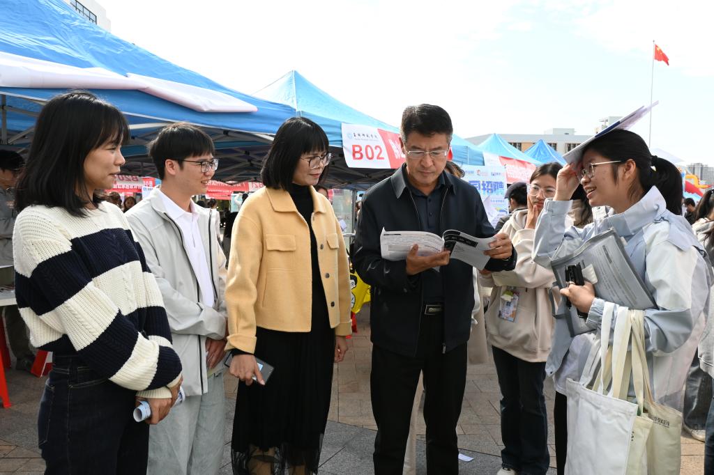 本站讯 11月28日上午,永利yl23411集团2025届毕业生冬季就业双选会在东校区读书广场举行,我院院长肖国栋、党委副书记邓荫金带队到双选会现场指导毕业生就业。