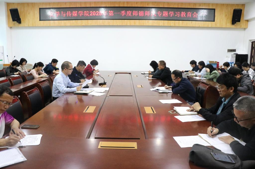 本站讯 4月8日下午,yL23411永利集团在我校东校区至善楼309会议室召开2025年第一季度师德师风专题学习教育会。我院领导班子成员和全体教职工参会,会议由我院党委书记冯健秋主持。