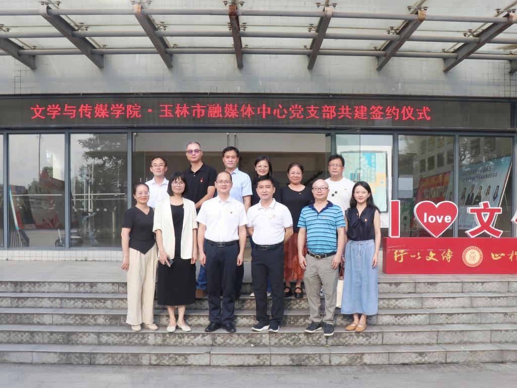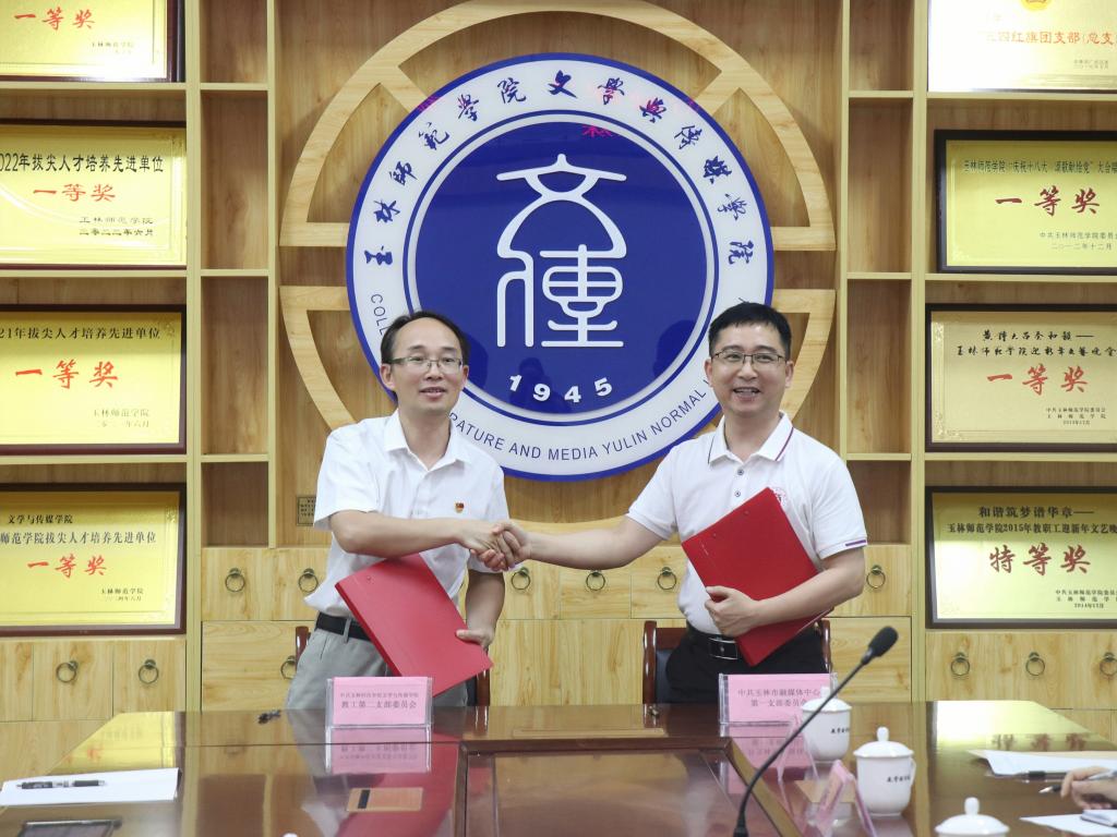 本站讯 为深入贯彻落实党的二十大精神,推动基层党组织建设,充分发挥党建引领作用,促进党建工作与业务工作深度融合,5月22日下午,玉林市融媒体中心第一党支部与yL23411永利集团教工第二党支部在我校东校区至善楼309会议室举行党支部共建签约仪式。玉林市融媒体中心党委副书记胡加宁,yL23411永利集团党委书记冯健秋、副书记邓荫金以及两个支部全体党员参加签约仪式。