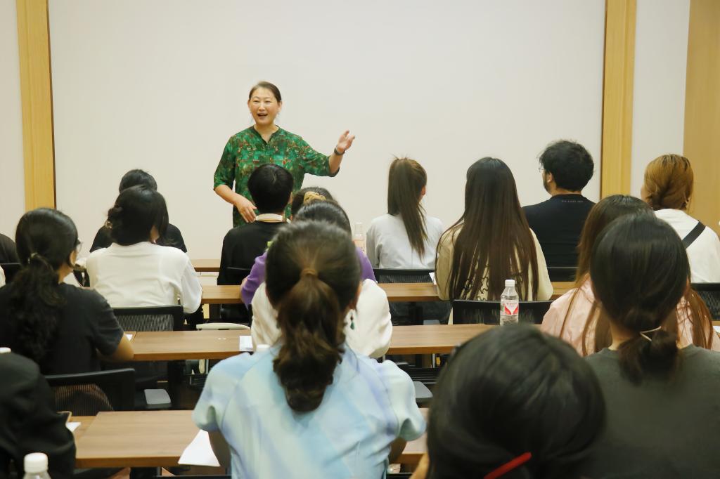 会上,王力博物馆馆长唐济飞对参训师生表示欢迎,并表示馆方将积极为剧组查阅资料提供支持。随后,高方就《青年王力》剧本进行深入解读。她强调王力先生在语言学领域的卓越成就,并阐述了选择其青年时期作为演绎对象的意义。她指出,演员在舞台呈现中既要深入理解角色内心,又要服从导演的整体调度,一个是针对个人角色,一个是要总揽全局,唯有将二者有机融合,才能让表演既具灵魂又成体系。最后,她讲述青年王力在求学及归国任教等关键阶段的事迹,简要分析其生活经历中重要人物的性格特点及其对王力的影响。
