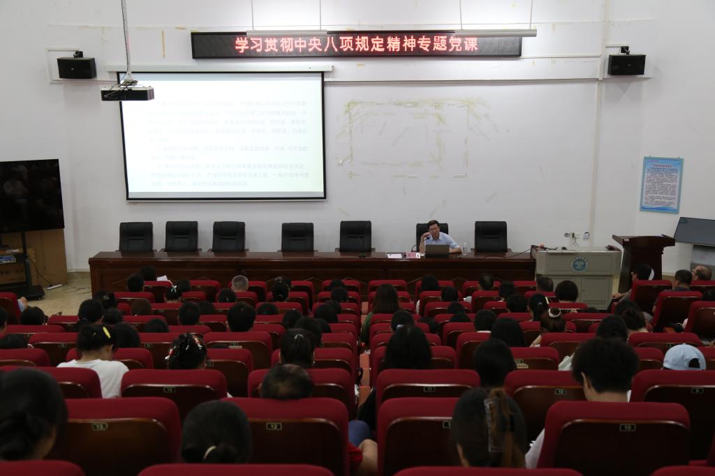 党课上,徐一周从深刻把握中央八项规定精神的核心要义和实践要求、深入学习习近平总书记关于加强党的作风建设的重要论述、一体推进整饬作风、惩治腐败等3个方面对中央八项规定精神的核心要义与实践要求进行了全面解读,并深入解读了有令不行、担当不足、加重基层负担等形式主义、官僚主义的4类表现;违规吃喝、收送礼金、公款旅游等享乐主义奢靡之风的6大类14种表现,深刻剖析反面案例,深化以案说德,以案说纪,以案说法,教育引导广大党员进一步增强纪律意识、强化对纪律的敬畏。