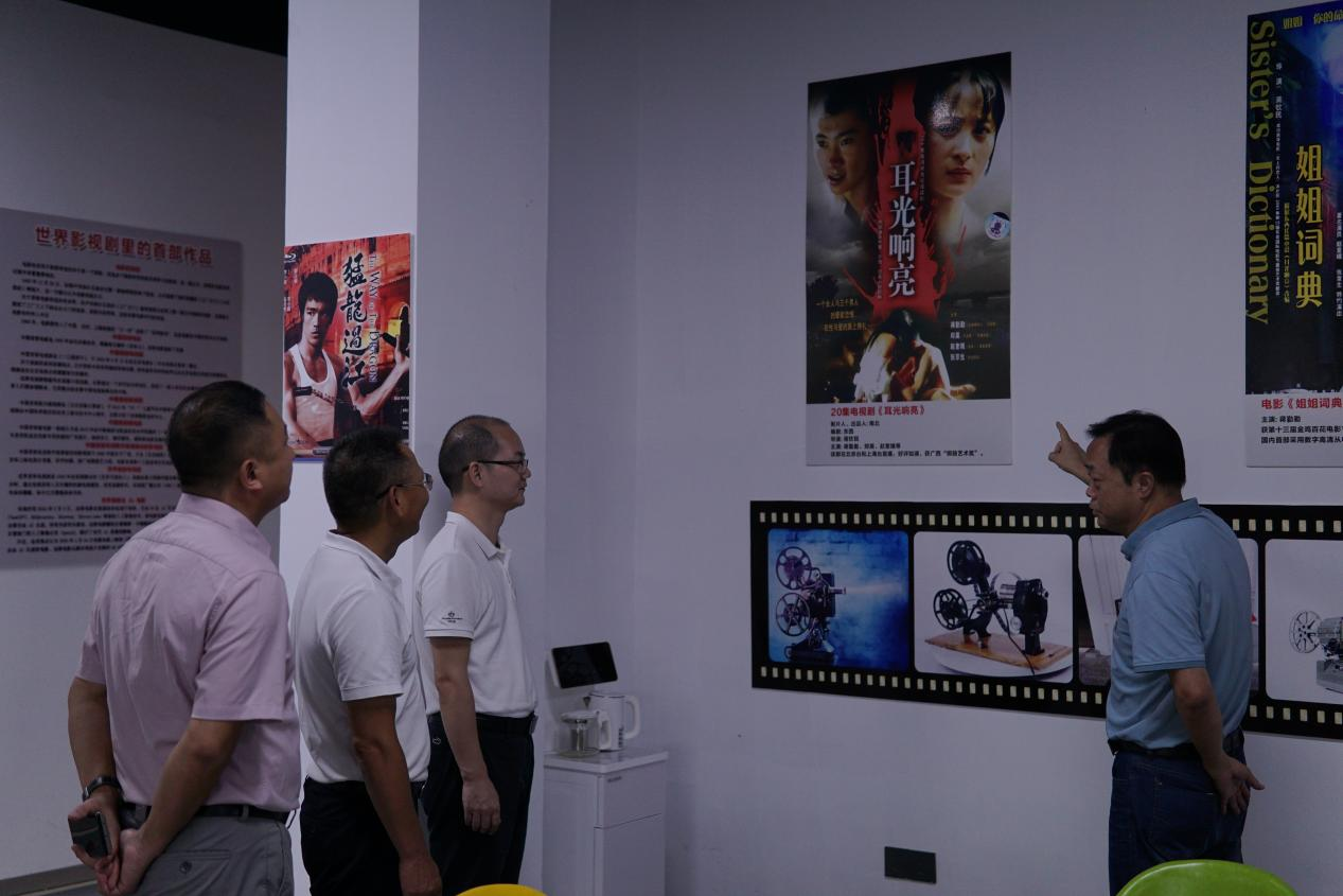 冯健秋在广西艺华幻城影视文化传媒有限公司负责人莫小松校友的引领下,参观了该公司的办公区域、影视作品展等,深入了解公司的业务范围、发展历程。莫小松详细介绍了公司在影视制作、文化传播等领域取得的成绩,展示了该公司影视剧创作方面的优秀作品。
