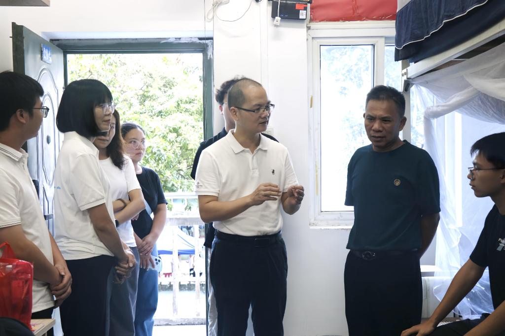 本站讯 为切实掌握新生入校后的学习与生活状态,更深入地熟悉新生情况,9月13日下午,我院领导班子一行与辅导员、班主任分别走访了东西校区2025级新生宿舍。