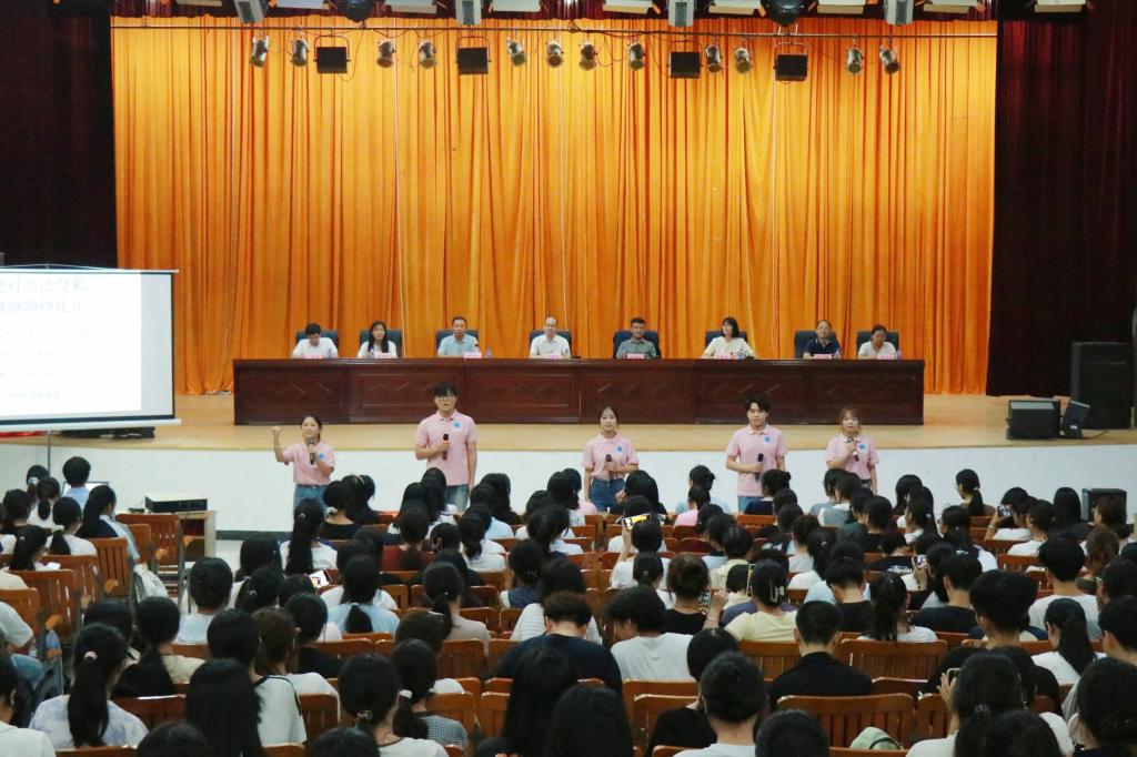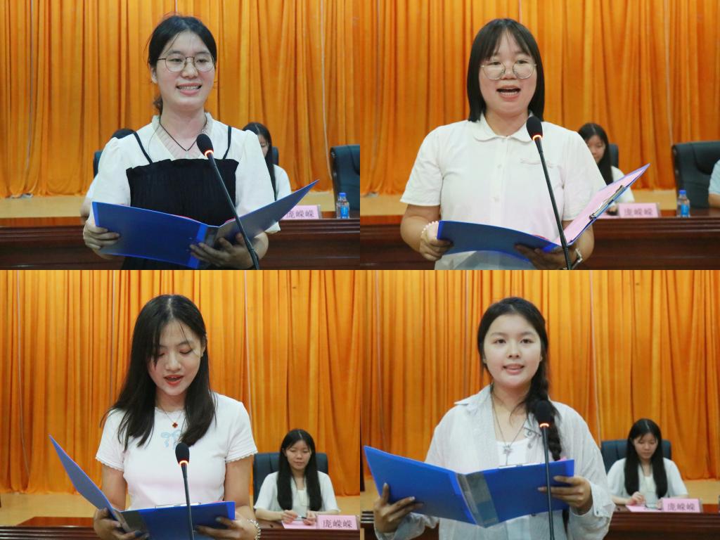 会上,邓荫金代表学院热烈欢迎新生的到来,并逐一介绍参会的学院领导老师,帮助新生更快了解学院的师资力量。随后,中文系和传媒系老生代表依次上台,分享了自己的成长心得与学习感悟,勉励新生珍惜时光,勇敢探索未知的大学生活;紧接着,中文系和传媒系的新生代表先后发言,表达了对未来学习生活的美好憧憬与期待。