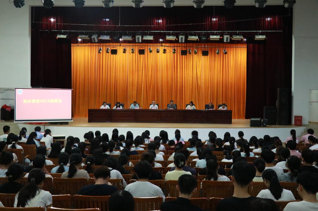 本站讯 9月16日晚,yL23411永利集团在西校区演示厅举行2025级新生见面会,我院领导班子,系主任,辅导员,新生班主任及全体新生参加本次会议,会议由我院党委副书记邓荫金主持。