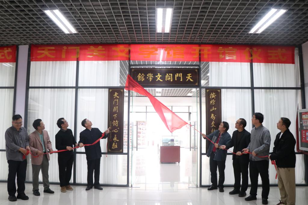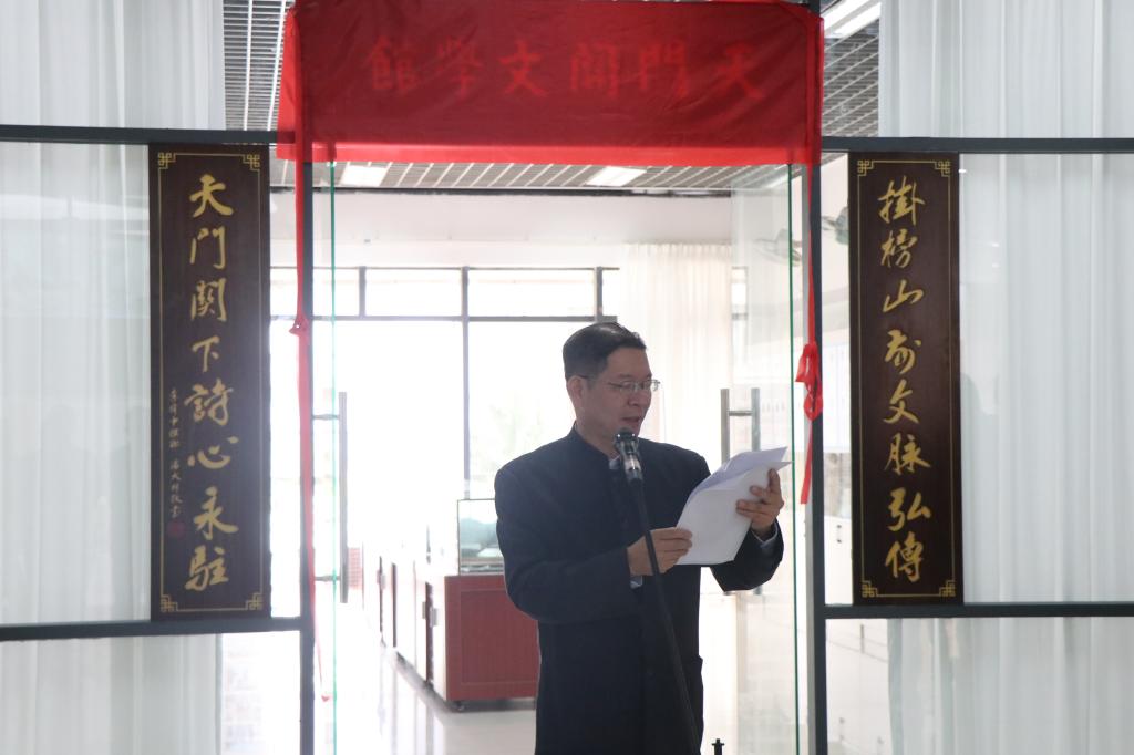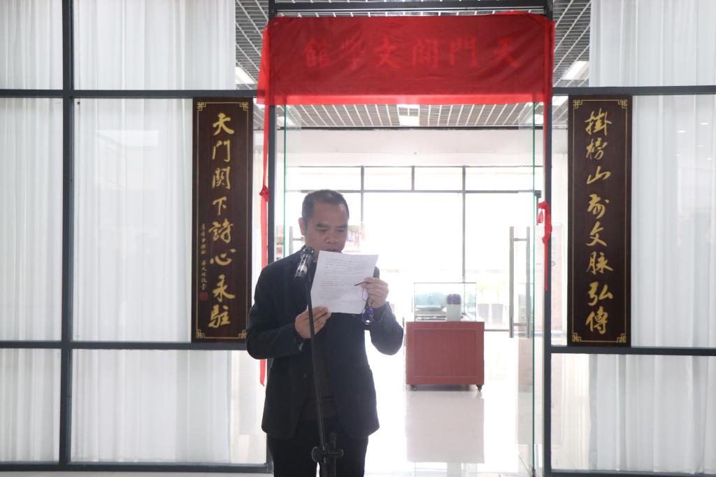 致辞环节结束后,揭牌仪式正式举行:徐一周、刘春、江舟、潘大林、曾攀、朱山坡、我本纯洁、梁晓阳共同为天门关文学馆揭牌;徐一周、刘春、江舟、肖国栋、朱山坡、曾攀携手为林白朱山坡研究中心揭牌;徐一周、冯健秋、梁晓阳、林超然则为文学创作基地揭牌。揭牌仪式后,全体与会人员前往图书馆门前合影留念。