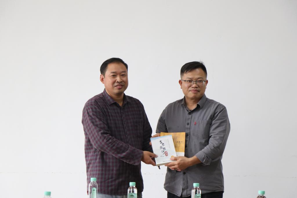 座谈会尾声,玉林作协主席梁晓阳、贵港作协主席徐强,以及历史文化旅游学院院长宋永忠、画说系列丛书代表作家张中教授等人分别向文学馆和研究中心捐赠书籍。