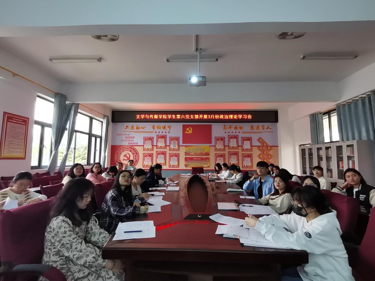 本站讯 3月19日,我院学生第六党支部于我校东校区至善楼206党员学习教育基地开展以“夯实思想基础,凝聚奋进力量”为主题的政治理论学习会。会议由学院党建中心主要负责人刘美霞主持,支部全体党员参加会议。