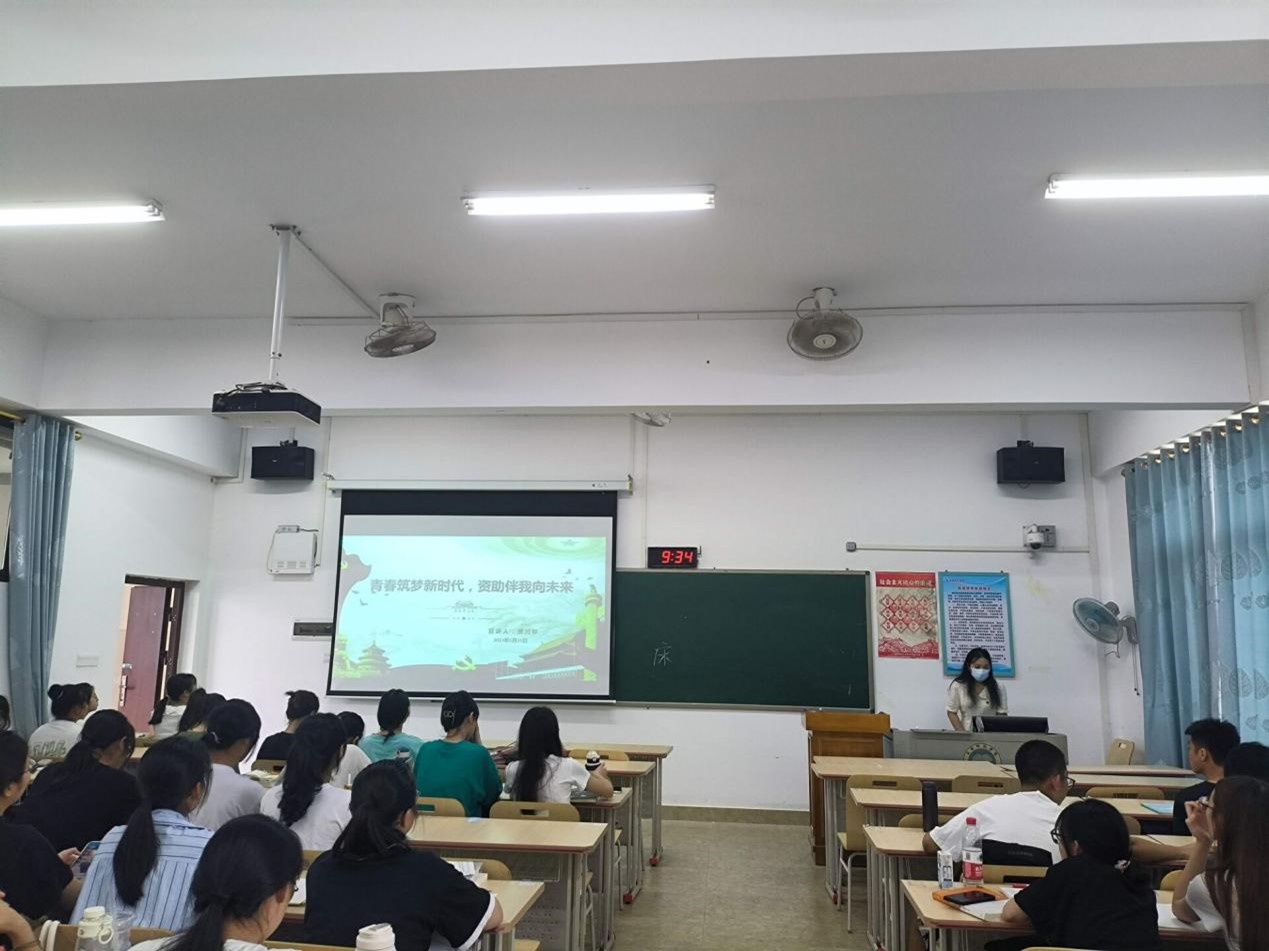 本站讯 为贯彻党的二十大精神,落实资助政策宣传,我院广播电视学2022班于5月25日于至善楼503教室开展“以青春筑梦新时代,资助伴我向未来”为主题的党史宣讲活动。本次活动由广电2020班同学贾月婷主讲,该班全体同学参加。