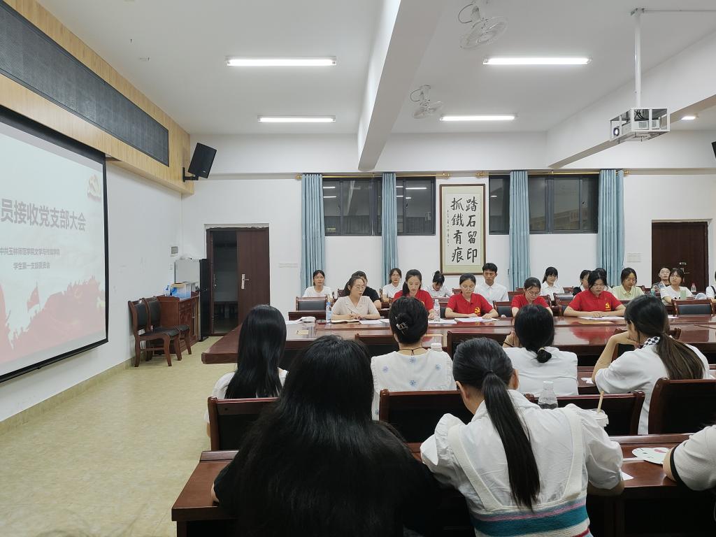 本站讯 为进一步加强学生党员队伍建设,6月6日晚,我院学生第一党支部于我校东校区至善楼309会议室召开预备党员接收大会。该支部书记秦爽出席会议,支部党员和入党发展对象参加此次会议。本次大会由该支部副书记路雅萍主持。