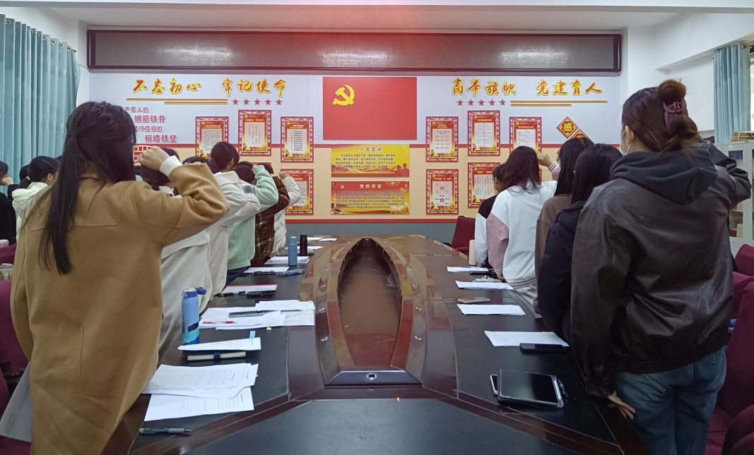 大会的结尾,庞嵘嵘领读入党誓词,全体党员起立进行入党宣誓。同时,庞嵘嵘对全体在会同志寄予希望,她表示,希望该支部学生在各方面继续发挥先锋模范作用,再接再厉,为党的事业做出更多的贡献。