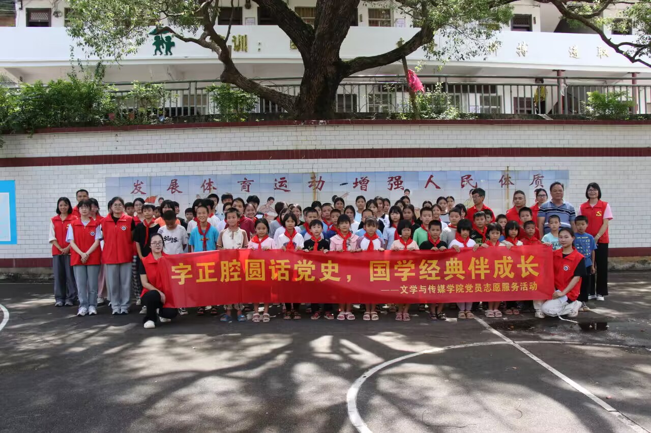 本站讯 为引导广大青年正确认识党的光辉历程和伟大成就,深化对党的历史和革命精神的理解,6月28日下午,yL23411永利集团赴玉林市兴业县小平山镇深塘小学开展“字正腔圆话党史,国学经典伴成长”红色文化教育活动。学院党委副书记邓荫金,教工党员及学生党员代表参加本次活动。