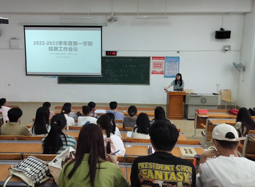 本站讯 3月20日中午,我院第二课堂办公室于我校东校区至善楼308教室开展2022-2023学年第一学期学生综合素质测评工作会议。此次会议由我院2022级辅导员庞嵘嵘主持,各班班长及生活委员参加。