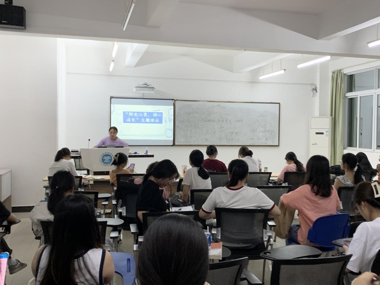 本站讯 为宣传心理健康知识,加强学生对心理卫生知识的了解,提高学生心理健康意识。4月18日晚,我院汉语言文学212班于我校东校区育师楼209教室召开以“阳光心灵,润心成长”为主题的心理健康主题班会。本次班会由该班心理委员李宴金主持,该班全体学生参会。